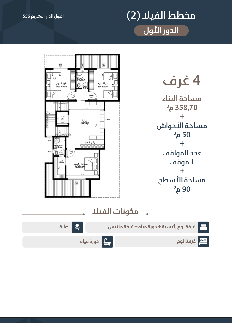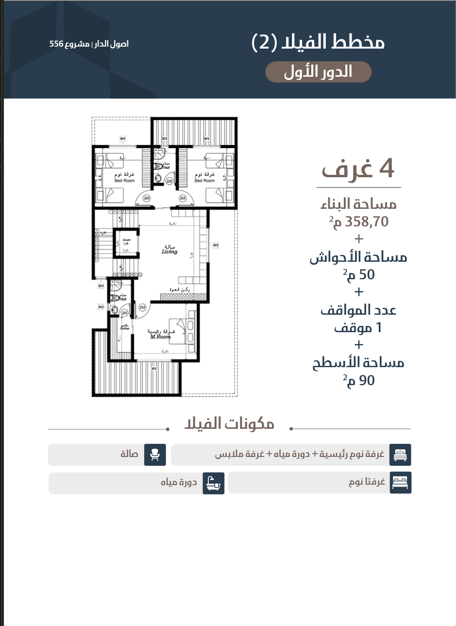 1 ﻏﺮﻓﺔ ﻧﻮم رﺋﻴﺴﻴﺔ + دورة ﻣﻴﺎﻩ + ﻏﺮﻓﺔ ﻣﻼﺑﺲ